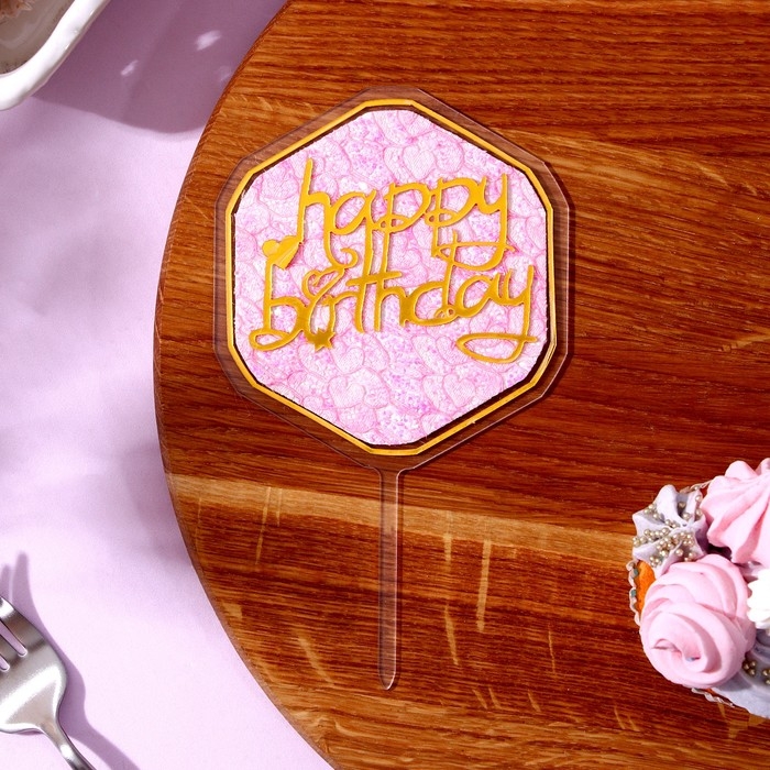 Набор для украшения: топпер «С днём рождения» 1 шт, кольцо для салфеток 1 шт, МИКС