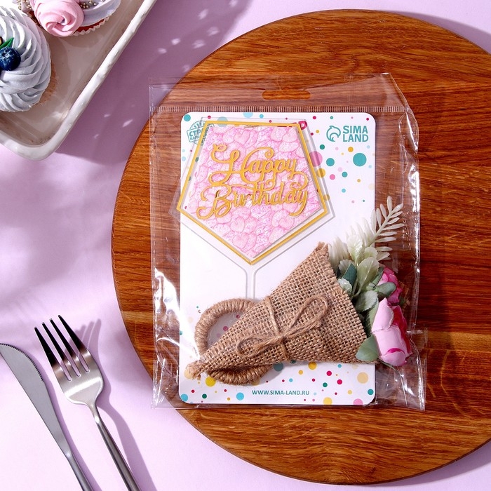 Комплект для украшения десертов с топпером «С днём рождения» и кольцом для салфеток — это изысканное решение для вашего праздничного стола.