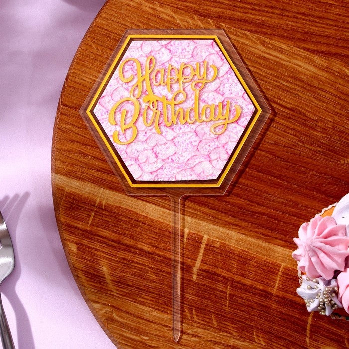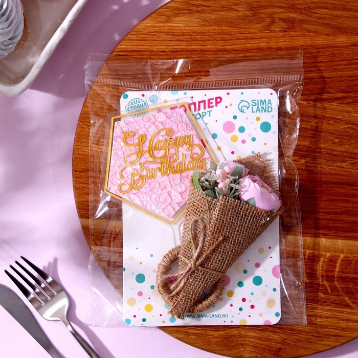 Набор для украшения: топпер «С днём рождения» 1 шт, кольцо для салфеток 1 шт, МИКС
