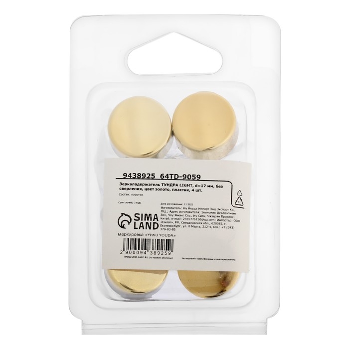Зеркалодержатель ТУНДРА LIGHT, d=17 мм, без сверления, цвет золото, пластик, 4 шт.