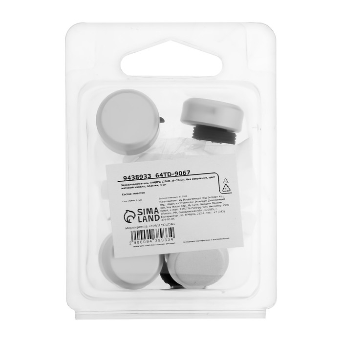 Зеркалодержатель ТУНДРА , d=20 мм, без сверления, цвет матовый никель, пластик, 4 шт.