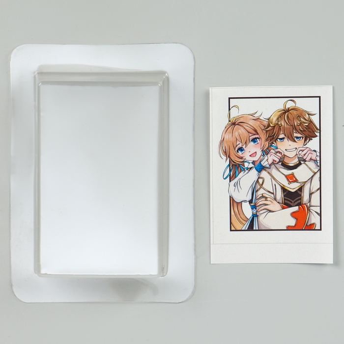 - В растопленное мыло быстро добавить 3-4 капли ароматизатора и перемешать. Затем залить мыльную основу в формочку на 5 мм, погрузить в неё картинку изображением вниз и оставить на 3 минуты.