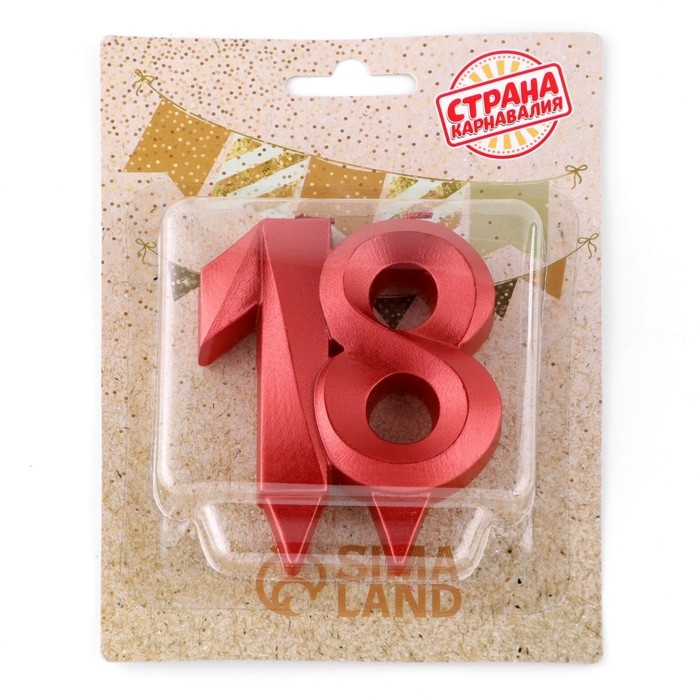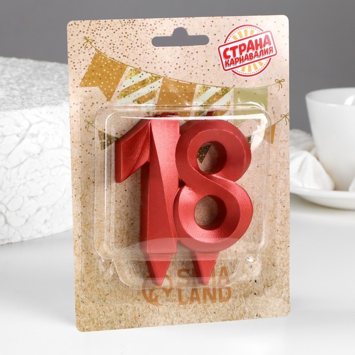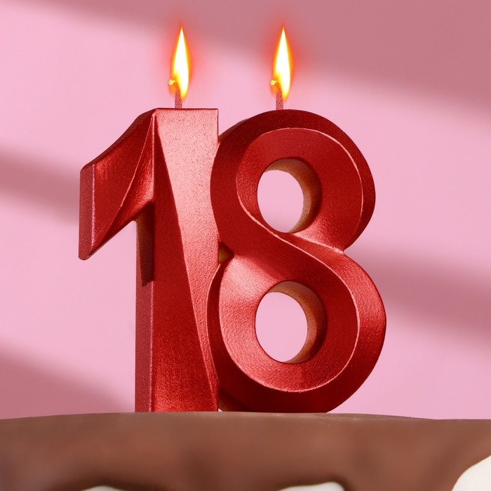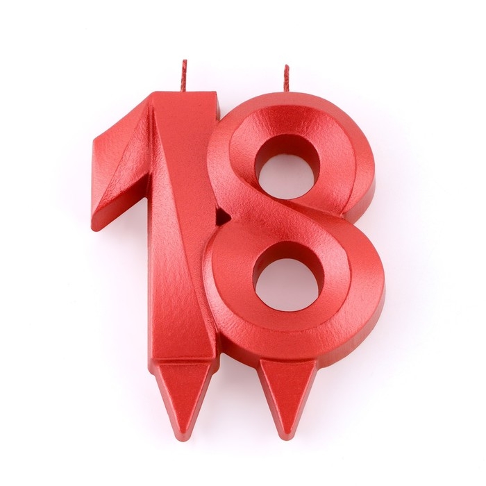 Свеча в торт юбилейная "Грань", цифра 18, красный металлик, 8см