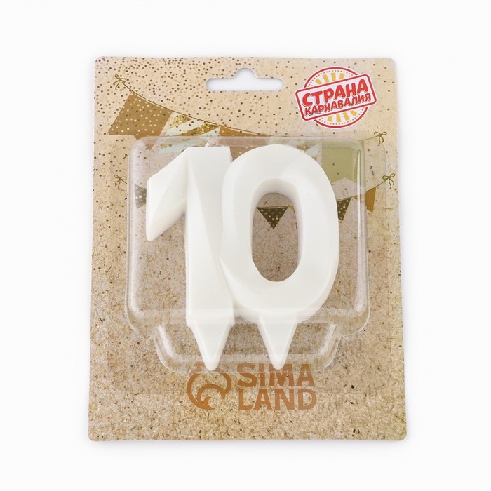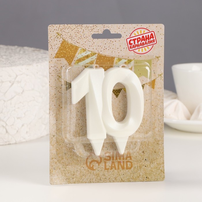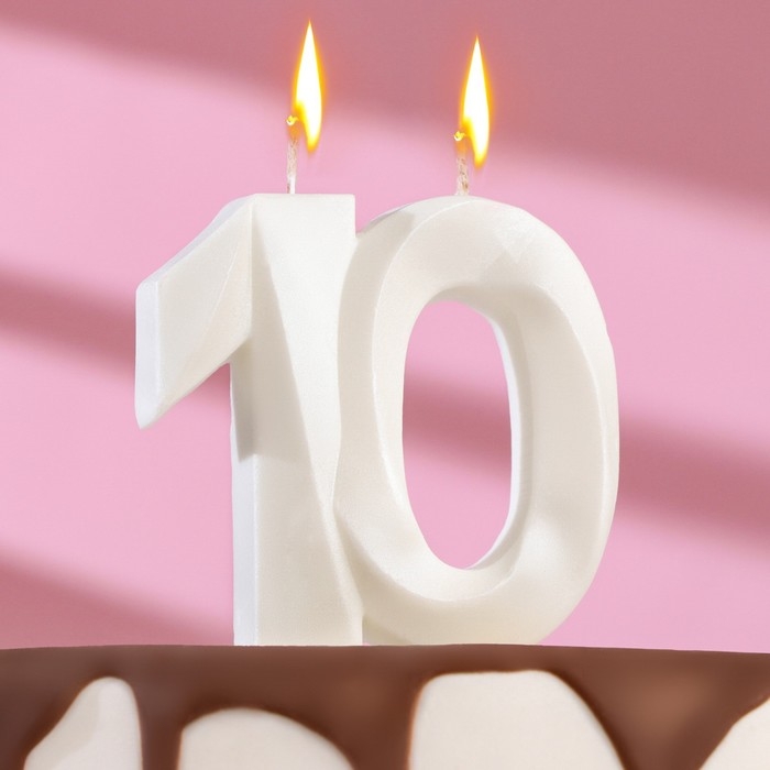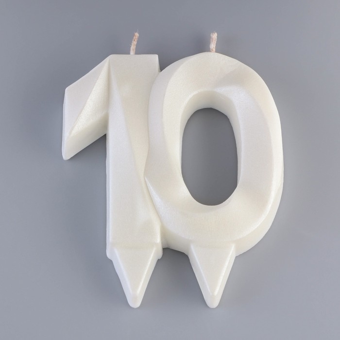 Свеча в торт юбилейная "Грань", цифра "10", жемчужный, 6,5 см