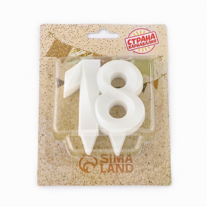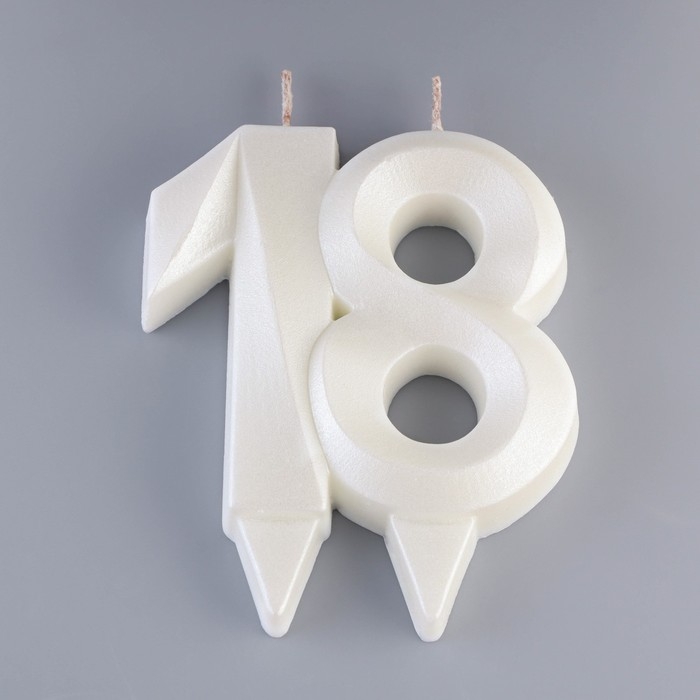 Свеча в торт юбилейная "Грань", цифра "18", жемчужный, 6,5 см