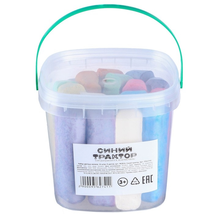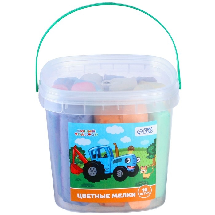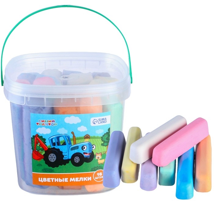 Набор цветных мелков Синий трактор, 16 штук, 8 цветов