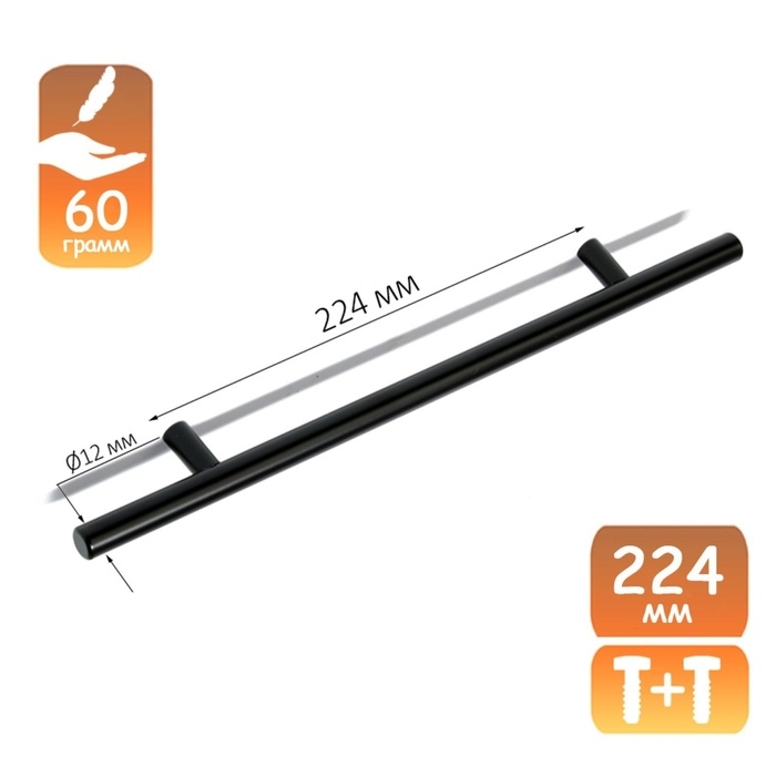 Ручка рейлинг CAPPIO FRIDA, нерж. сталь, d=12 мм, м/о 224 мм, цвет черный