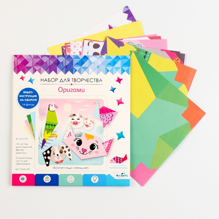 Набор для оригами — это уникальная возможность создать 16 различных фигурок, просто и легко, без использования ножниц и клея.