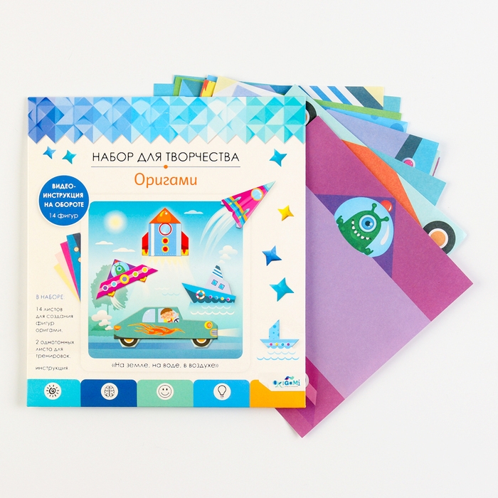Набор для оригами — это уникальная возможность создать 16 различных фигурок, просто и легко, без использования ножниц и клея.