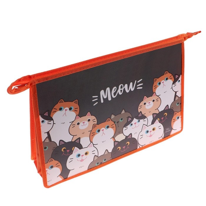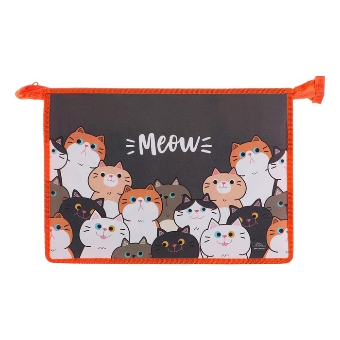 Папка для труда А4, 325 х 230 х 100 мм, молния сверху, пластиковая, ПТР-22 "Коты"