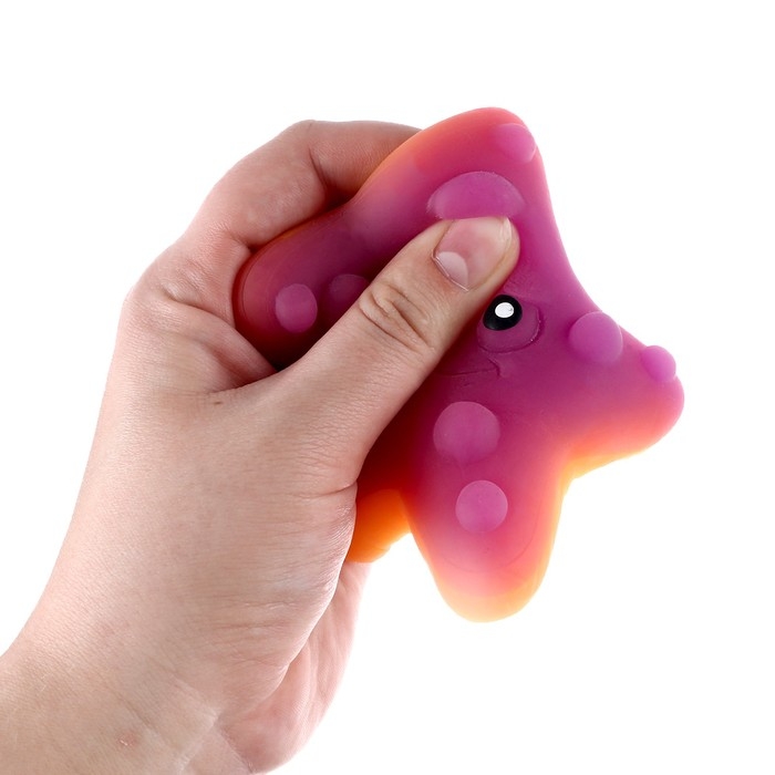 - При нажатии на игрушку снижается уровень стресса, развивается мелкая моторика и сила рук