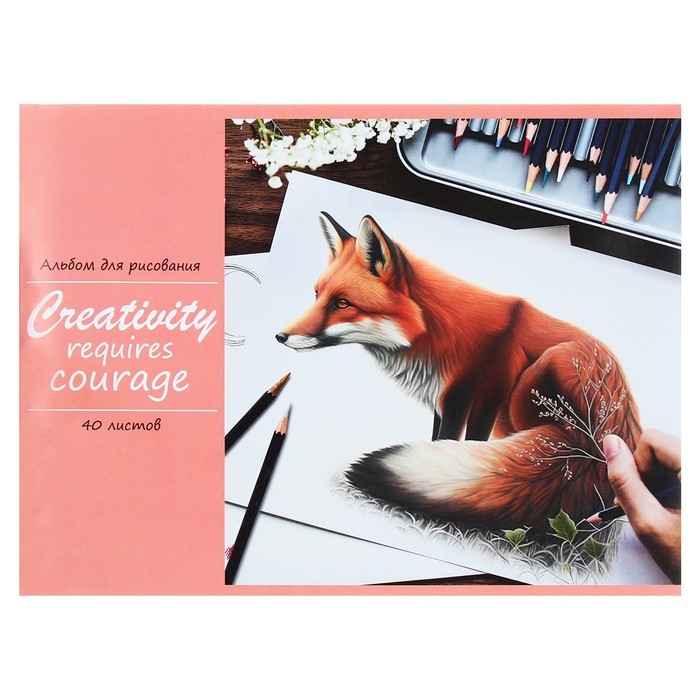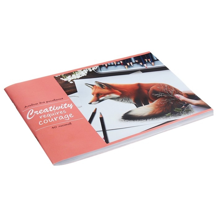 Альбом для рисования А4, 40 листов на скрепке "Лисица", обложка мелованная бумага 120 г/м², внутренний блок офсет 100 г/м²