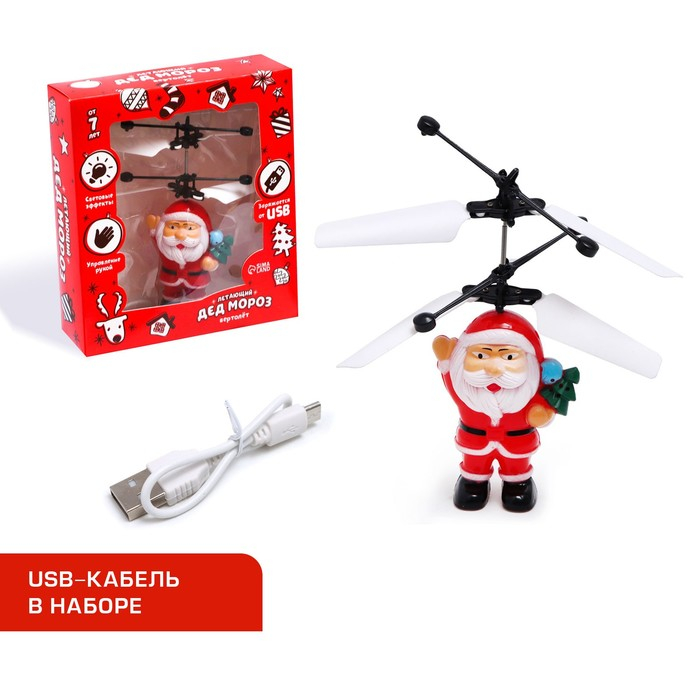 Летающая игрушка «Дед мороз», работает от аккумулятора, заряжается от USB