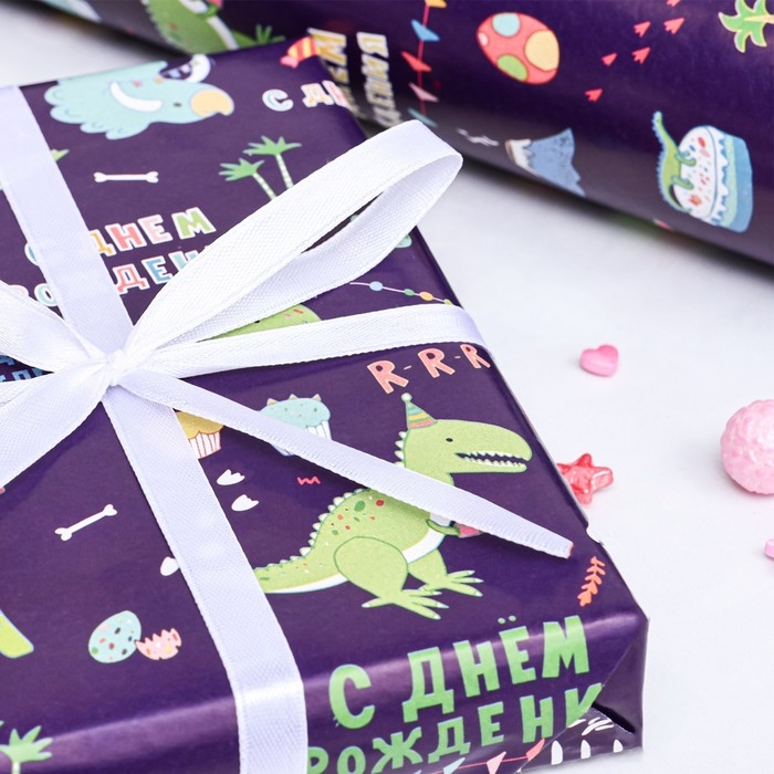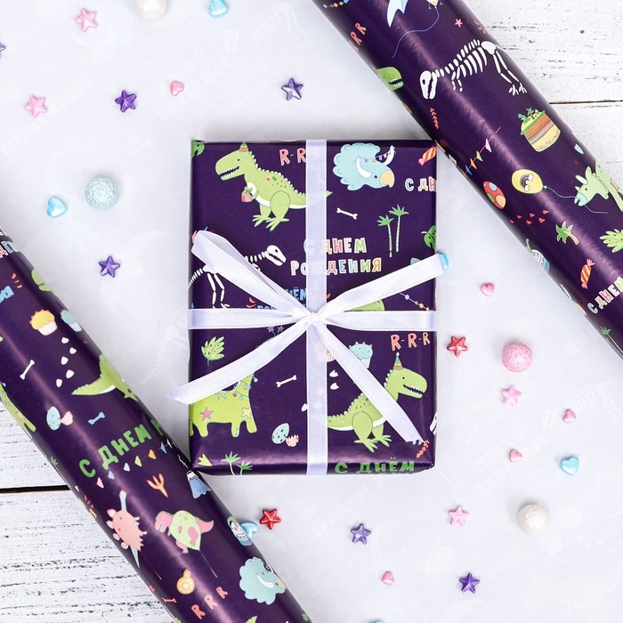 Бумага упаковочная,глянцевая "Динозаврик", 70 х 100 см, 1 лист