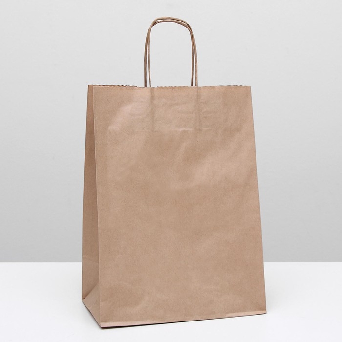 Пакет крафт без печати, круглая ручка 26 х 15 х 35 см, набор 10 шт