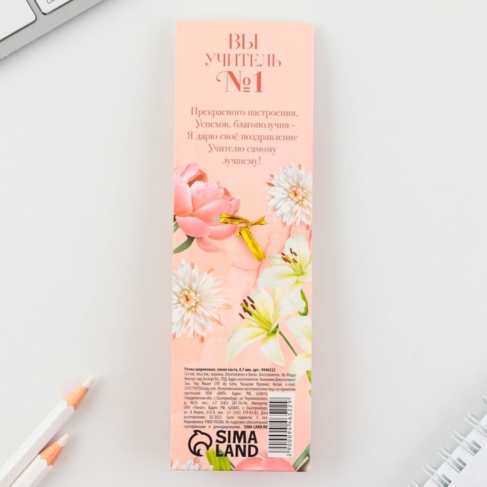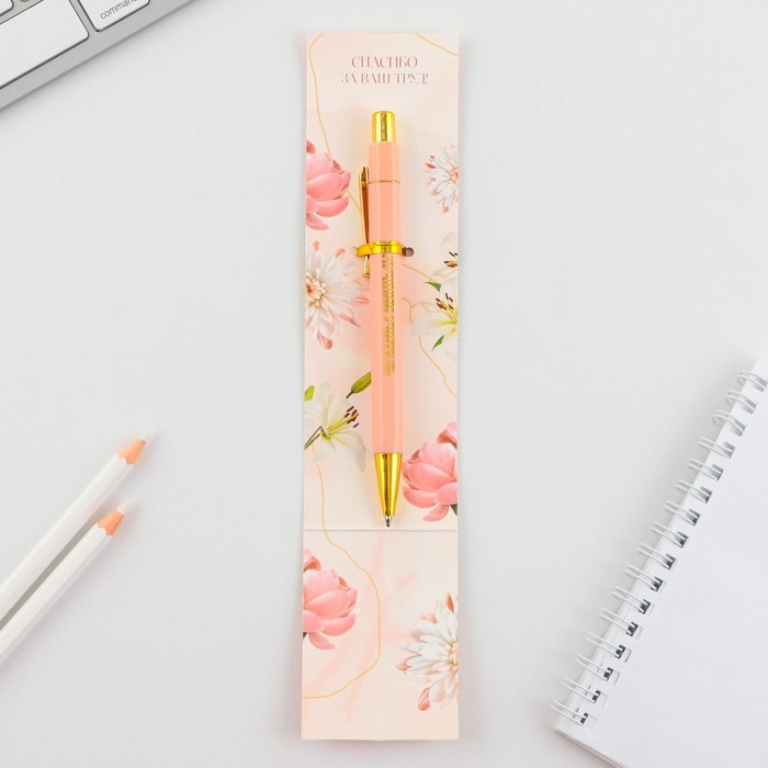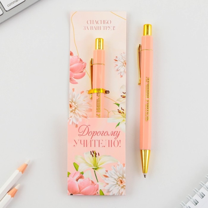 Ручка с колпачком и нанесением soft-touch «Любимому учителю», синяя паста 0.7 мм