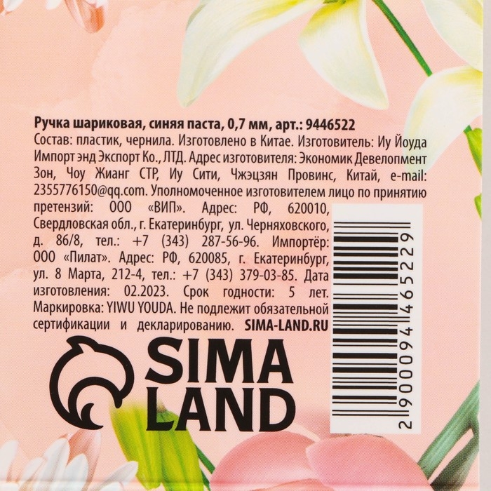 Ручка шариковая синяя паста «Цветок»,пластик, на подложке 8 марта