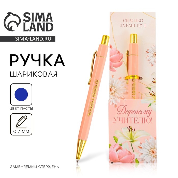 Ручка шариковая пластик «Дорогому учителю !», с тиснением на корпусе, синяя паста, 0,7 мм.