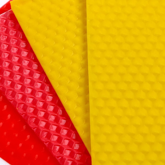 - Для свечи маленького размера возьмите стеку и отрежьте от листа вощины 5 см в длину и 13 см в ширину. Возьмите фитиль 6 см. Проделайте всё то же самое, что в предыдущих этапах. Свечи готовы!
