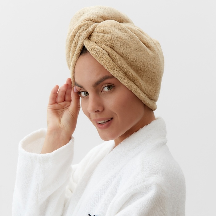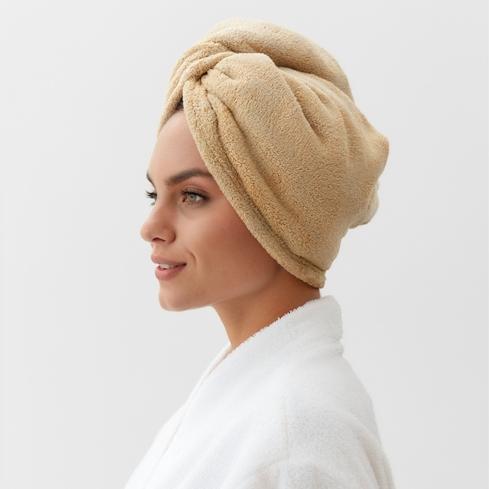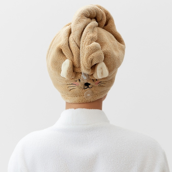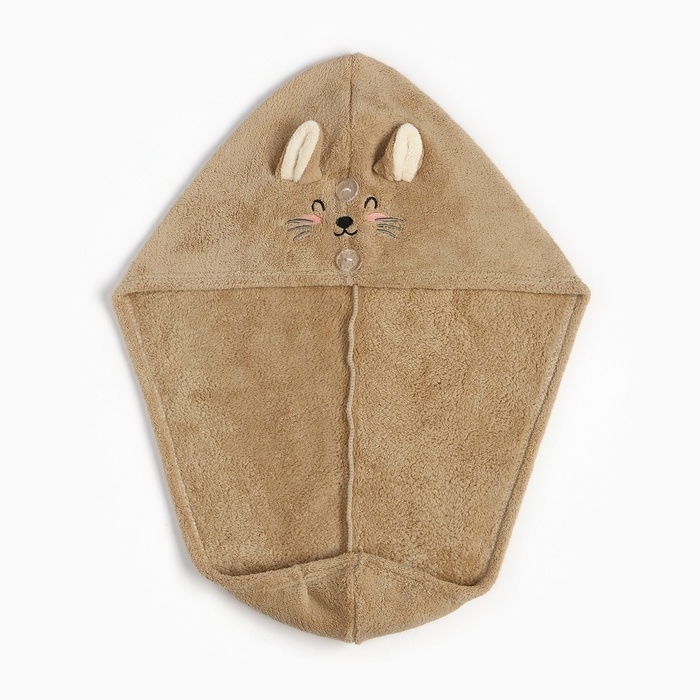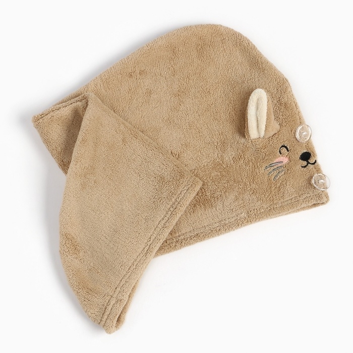 Полотенце-чалма для сушки волос Этель "Милашка", цвет коричневый, 65х25 см, 100% п/э