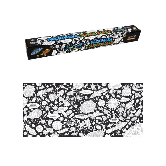 Благодаря большому формату вы легко сможете раскрашивать такой плакат всей семьёй, а на чёрном фоне все рисунки будут выглядеть ещё ярче и интереснее! И совсем не страшно, если где-то вы вышли за края рисунка — этого не будет видно!