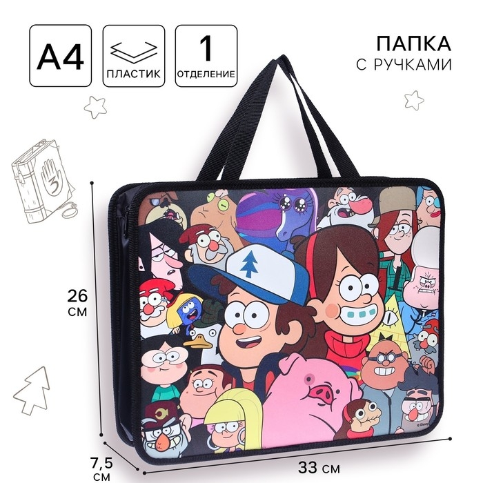 Папка пластиковая с ручками А4, на молнии, 75х330х260 мм, Гравити Фолз