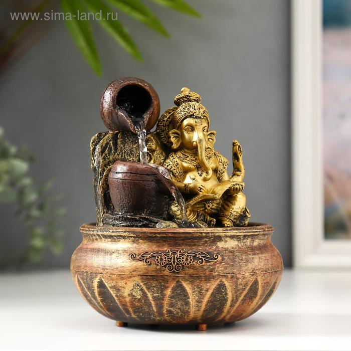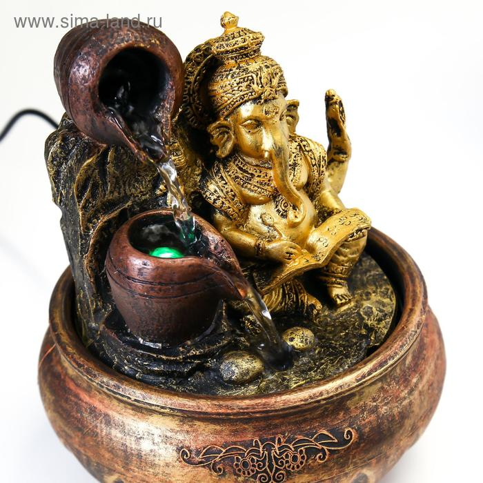 Фонтан настольный от сети, подсветка "Ганеша с кувшинами" 20х15х15 см