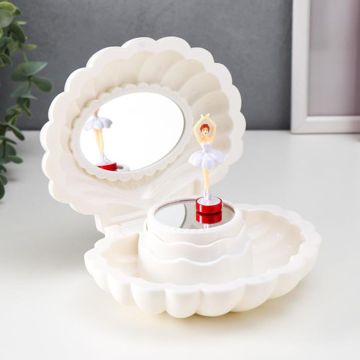 Шкатулка музыкальная механическая "Белая ракушка" 7,5х15,5х12 см