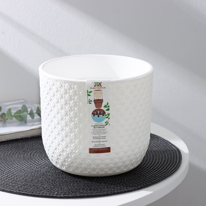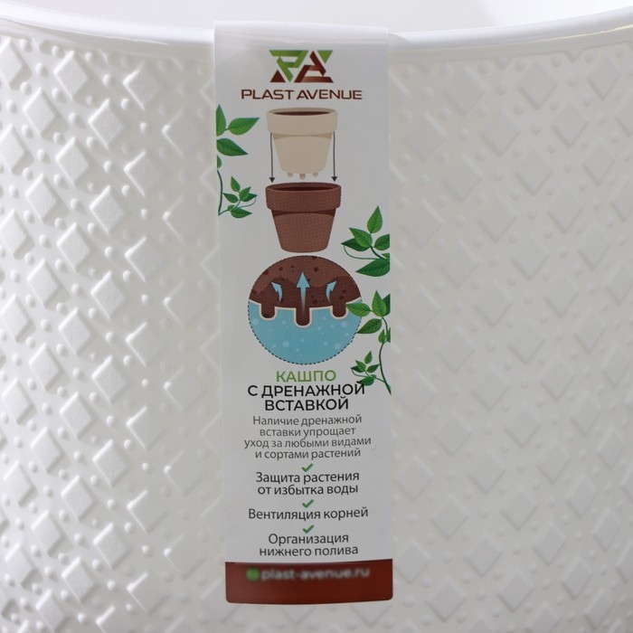 Кашпо со вставкой «Клевер», 3,2 л, d=17,5 см, h=16 см, цвет белый