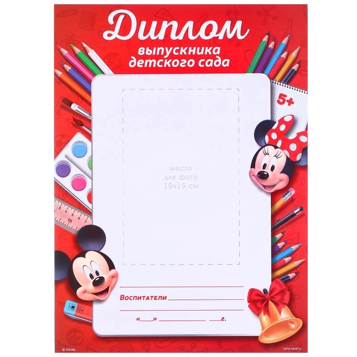 Набор на выпускной "Выпускник детского сада", медаль и диплом, Микки Маус