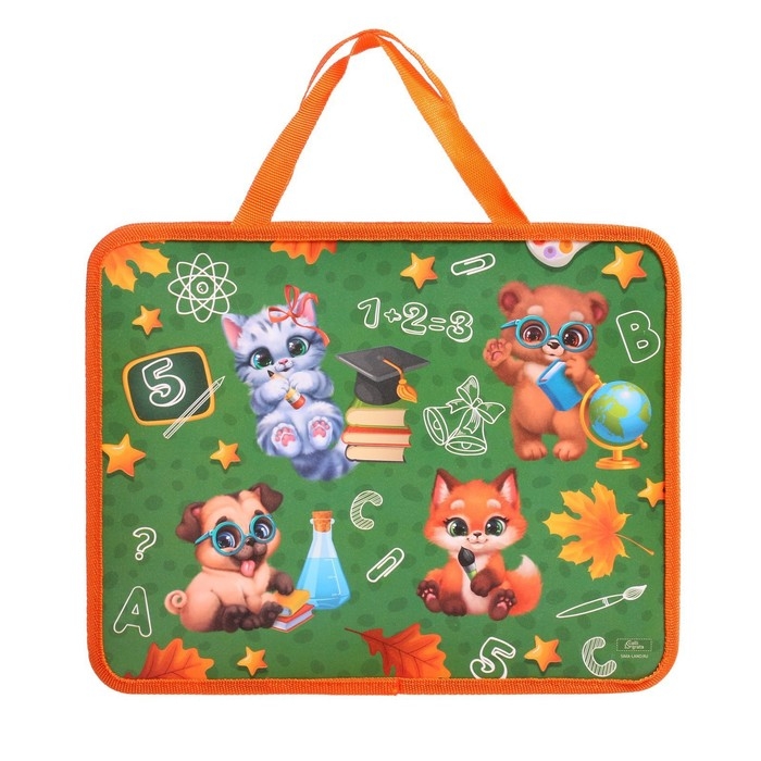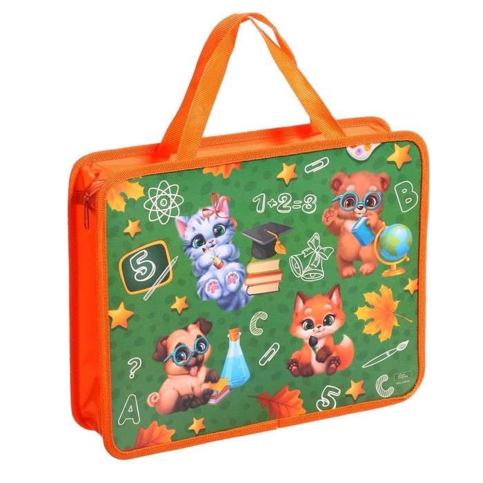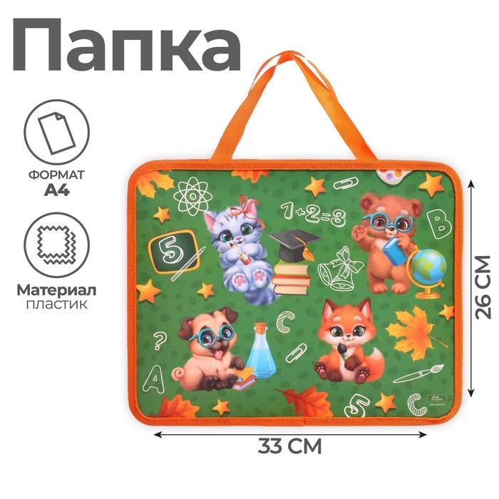 Папка с ручками А4, 330 х 260 х 75 мм, пластиковая, ручки-тесьма, Calligrata "Зверята"