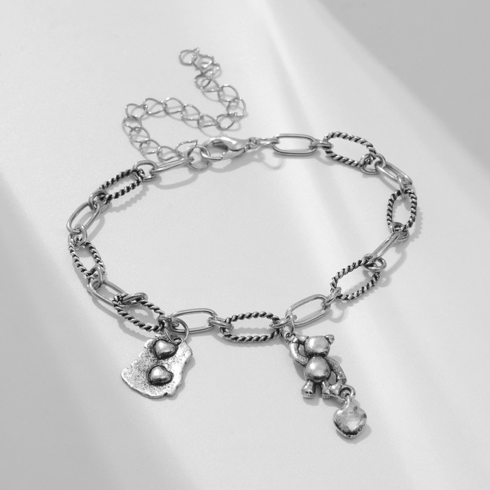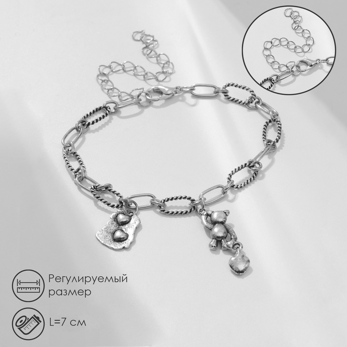 Браслет металл «Подвески» мишка, цвет серебро, 7 см