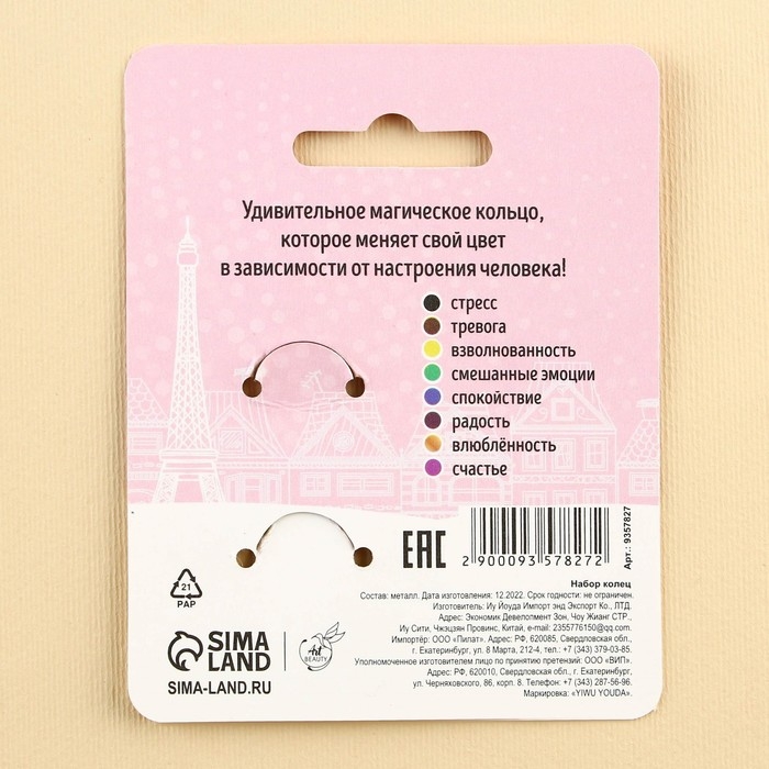 Кольцо настроение «Авонастроение», набор 2 шт