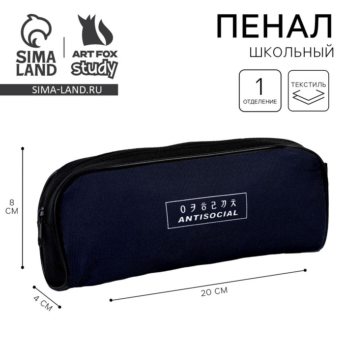Пенал школьный текстильный «1 сентября: Антисоциальный», 20 х 8 х 4 см