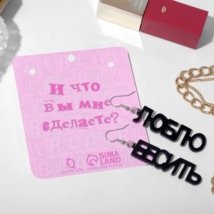 Серьги акрил «Люблю бесить» прямой шрифт, цвет чёрный в серебре