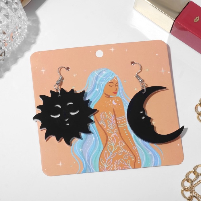 Серьги акрил «Полумесяц и солнышко», цвет чёрно-белый в серебре