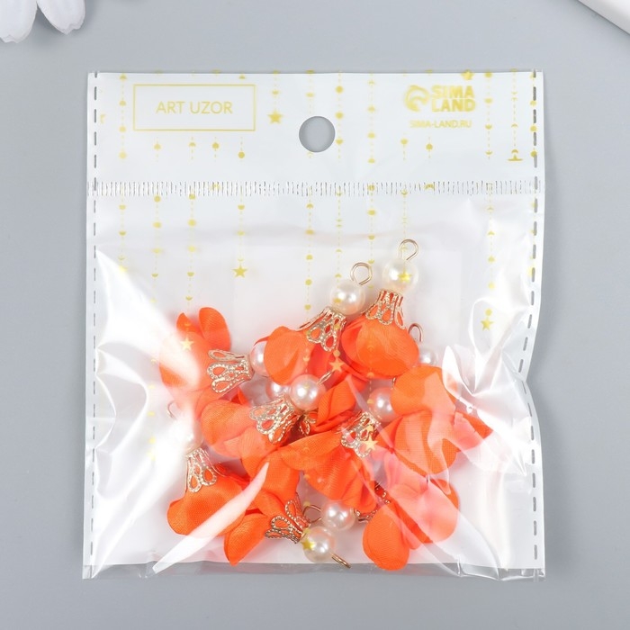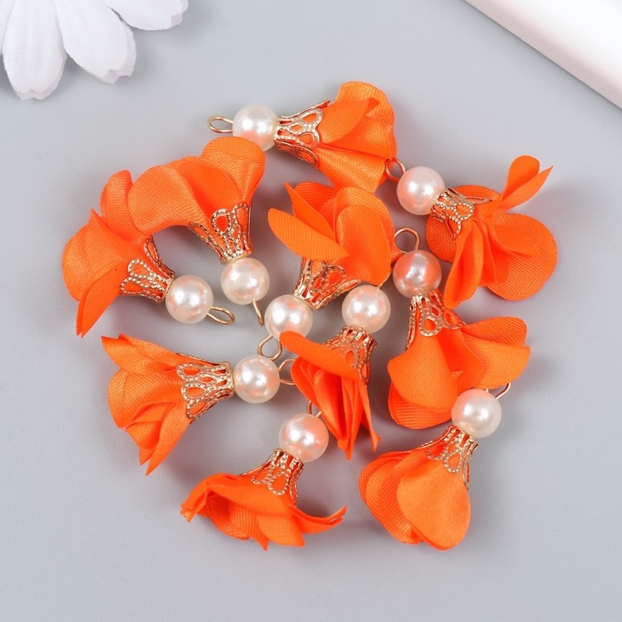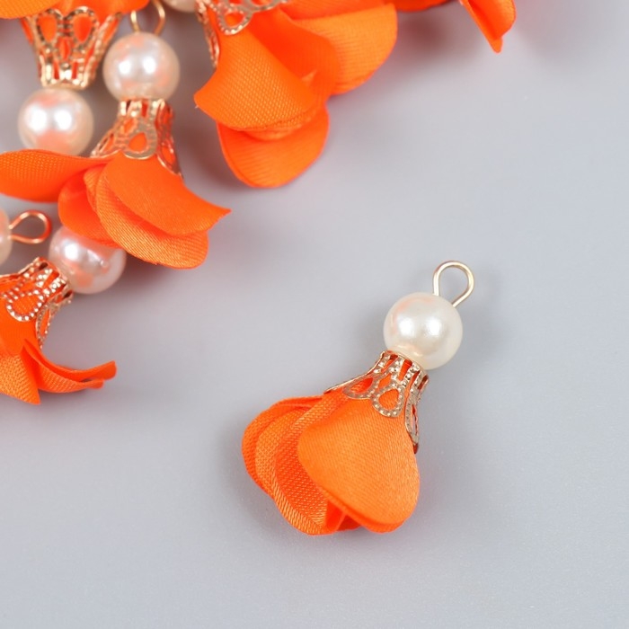 Декор для творчества текстиль "Цветок с жемчужиной. Алый" набор 10 шт 2,5 см