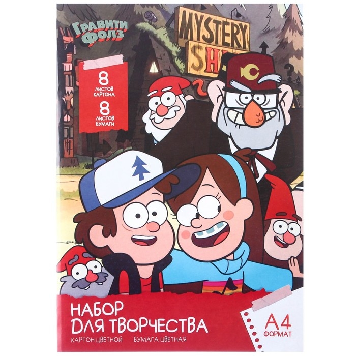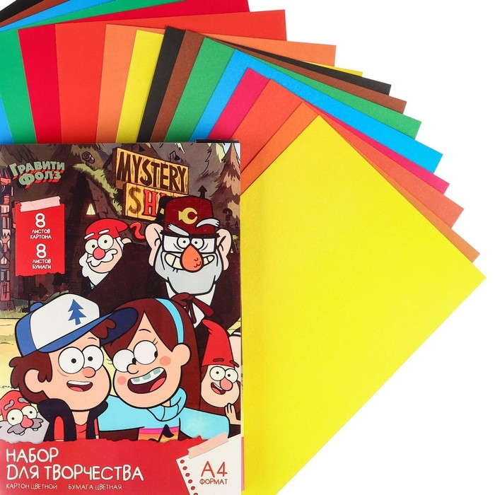Набор «Гравити Фолз» А4: 8 л. цв. одност. мел.картона и 8 л. цв. двуст. бумаги, Гравити Фолз