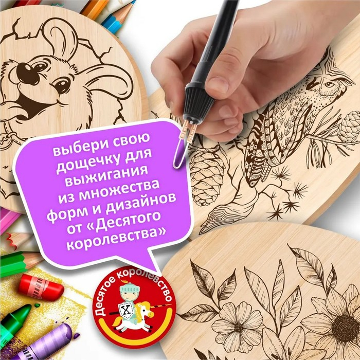 Выжигание по дереву — это популярное направление декоративно-прикладного искусства. Набор досок для творчества станет отличным подарком для детей, способствующим развитию творческих навыков и интересному времяпрепровождению.