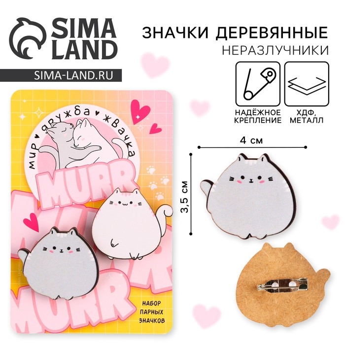 Значки деревянные, неразлучники «Мир Дружба Жвачка», 2 шт., 8 х 12 см.