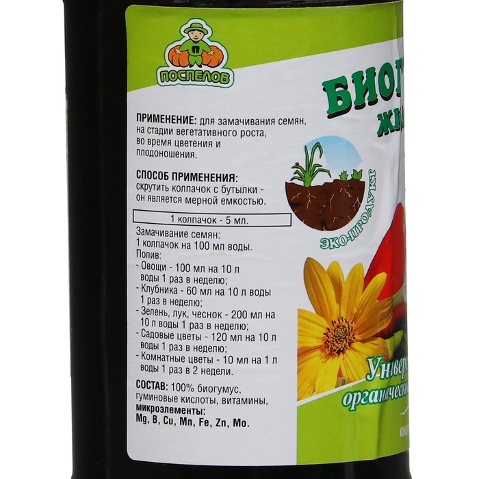 Биогумус жидкий концентрат - органоминеральное универсальное удобрение на основе гумуса применяется для корневых и внекорневых подкормок цветов, комнатных и декоративных растений, цветочной рассады, а также для замачивания семян, для овощей, клубней и луковиц цветов и укоренения черенков.