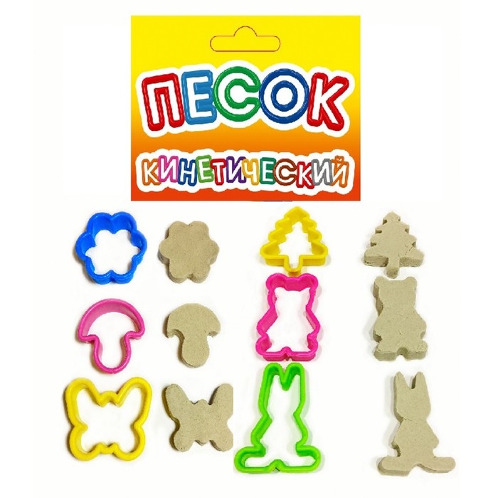 Кинетический песок, формочки 6 шт., «Цветок, грибок, бабочка, миша, зайчик, ёлочка»