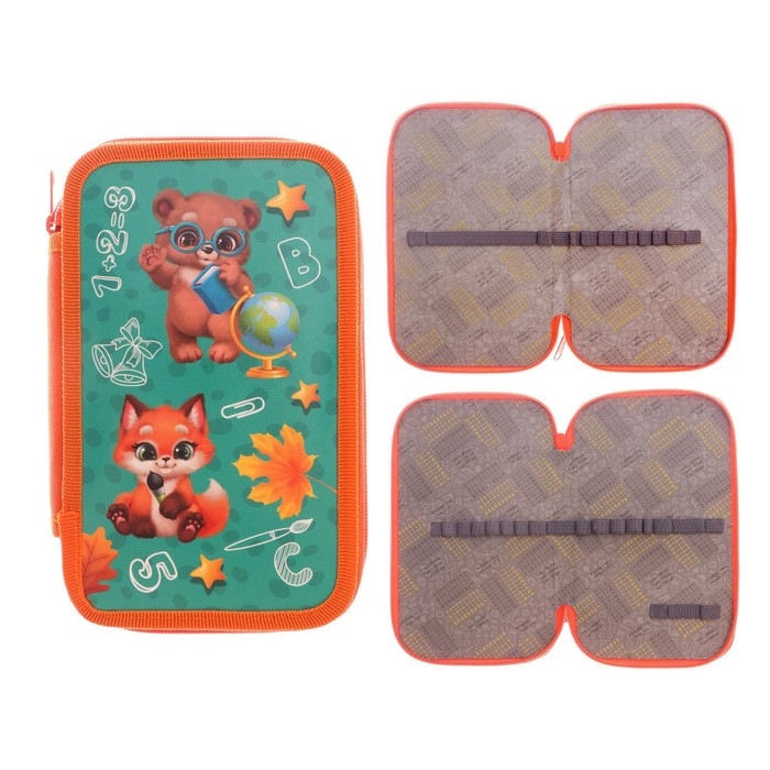 Пенал 2 секции, 125 х 205 х 40 мм, Calligrata 30П26/2 "Зверята", ламинированный картон