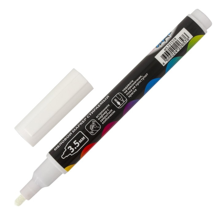 Маркер стираемый меловой для гладких поверхностей, 3,5 мм, BRAUBERG "POP-ART", белый