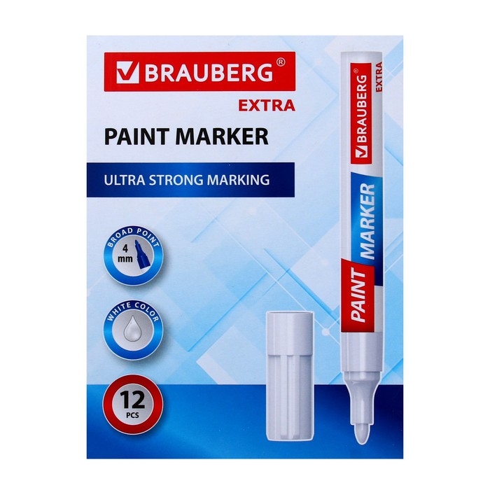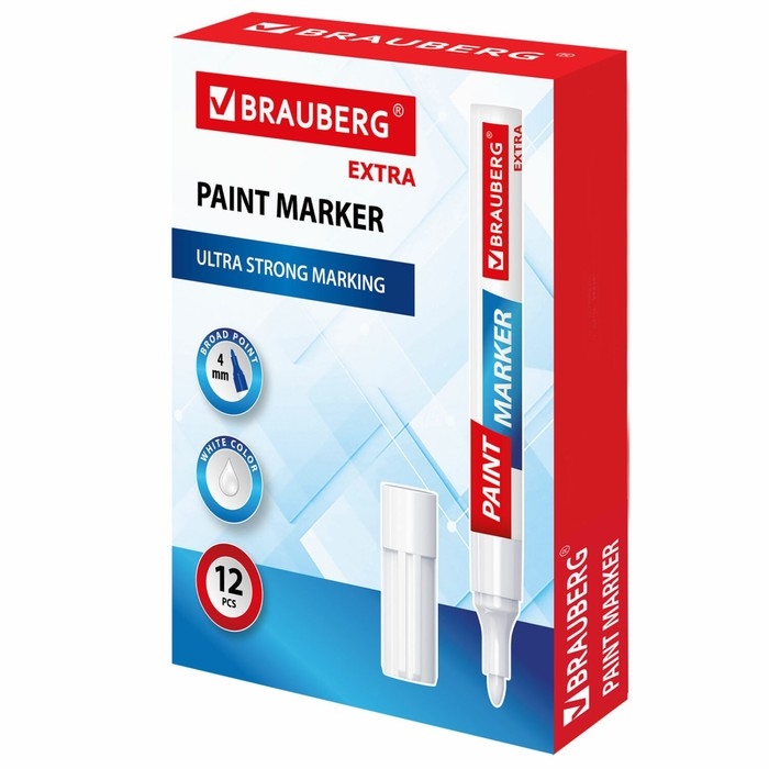 Маркер-краска (лаковый) 4.0 BRAUBERG EXTRA, усиленная нитро-основа, алюм, белый 151978