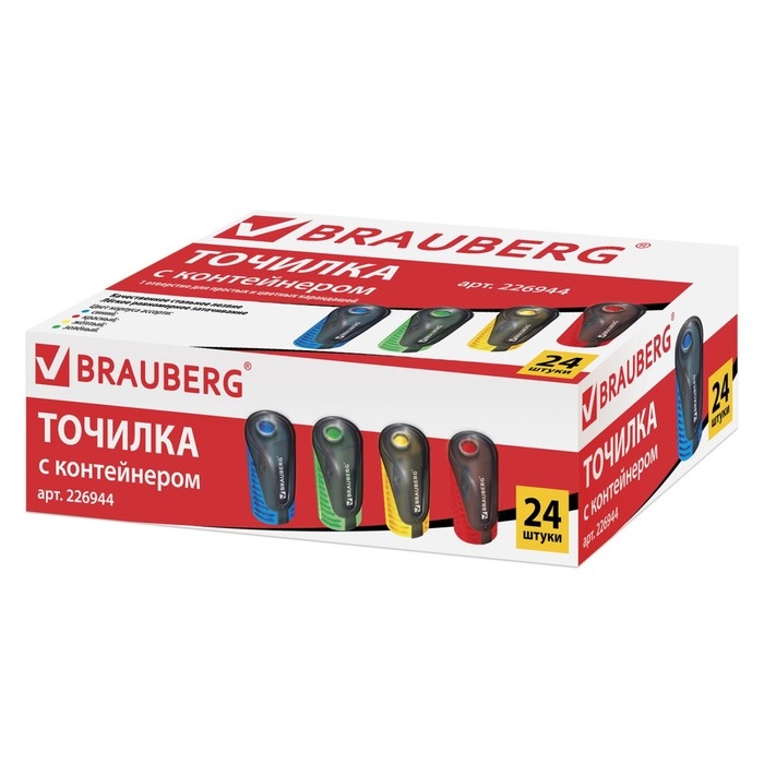 Точилка 1 отверстие с контейнером BRAUBERG "Cell", овальная, пластик, микс 226944