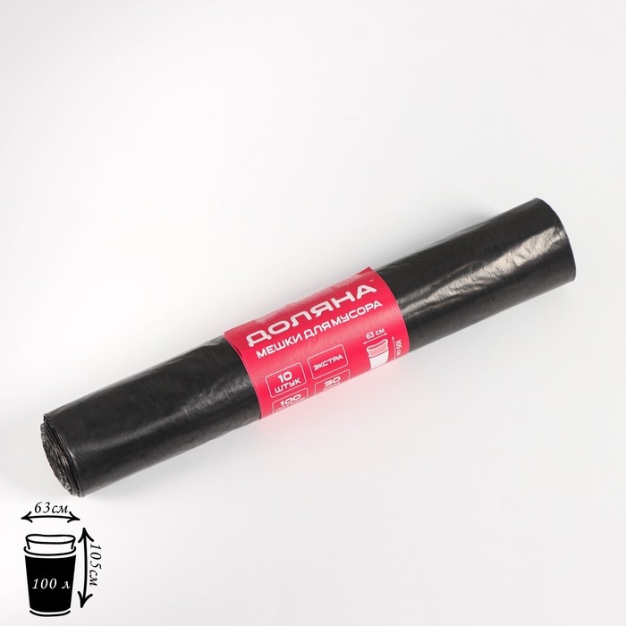 Мешки для мусора Доляна «Экстра», 100 л, 63×105 см, 30 мкм, ПВД, 10 шт, цвет черный
