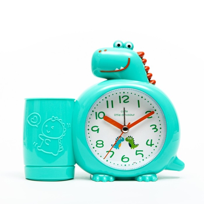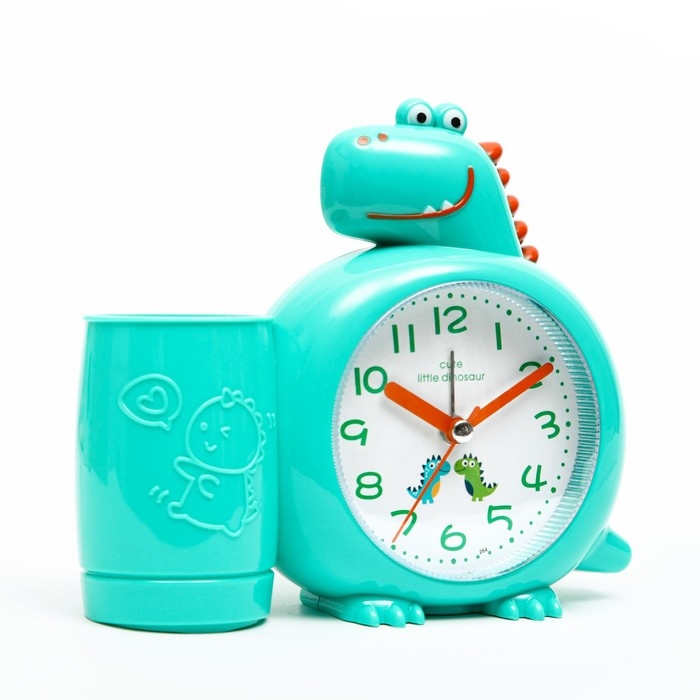 Часы - органайзер с будильником представлены в современном дизайне в форме динозавра, они отлично впишутся в интерьер. Интерьерные часы станут прекрасным декором для дома и дачи, их можно поставить как на прикроватную тумбочку в спальне, детской комнате, гостиной так и на стол или на комод в зале, холле или на кухне. Будильник настольный имеет кварцевый механизм, который гарантирует высокую точность хода. Часы настольные обладают громким будильником, ребенку и вам будет комфортно просыпаться, на работу и в школу. Будильник на батарейках не требует частой замены батареек благодаря экономичному механизму. В карандашнице можно хранить канцелярские принадлежности: цветные карандаши, кисти, ручки, ножницы.