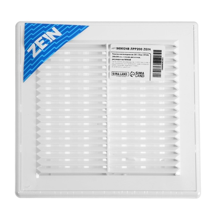 Решетка вентиляционная ZEIN Люкс ЛРР200, 200 х 200 мм, с сеткой, разъемная, регулируемая