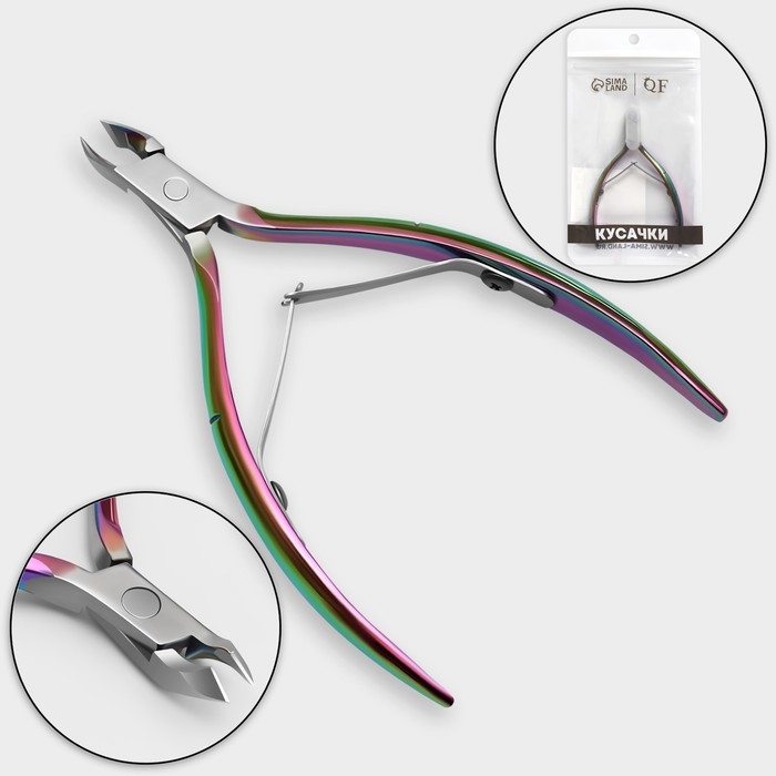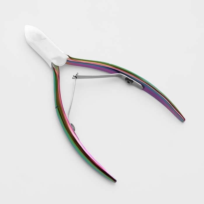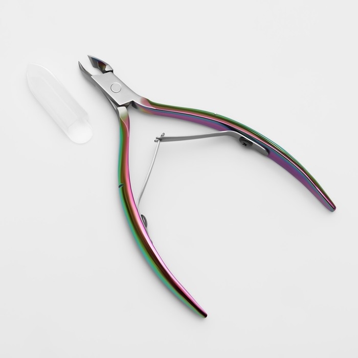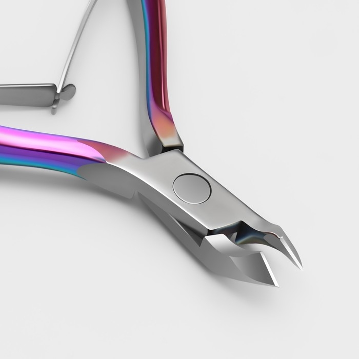 Кусачки маникюрные для кутикулы, изогнутое лезвие, двойная пружина, 10,5 см, длина лезвия - 5 мм, цвет хамелеон